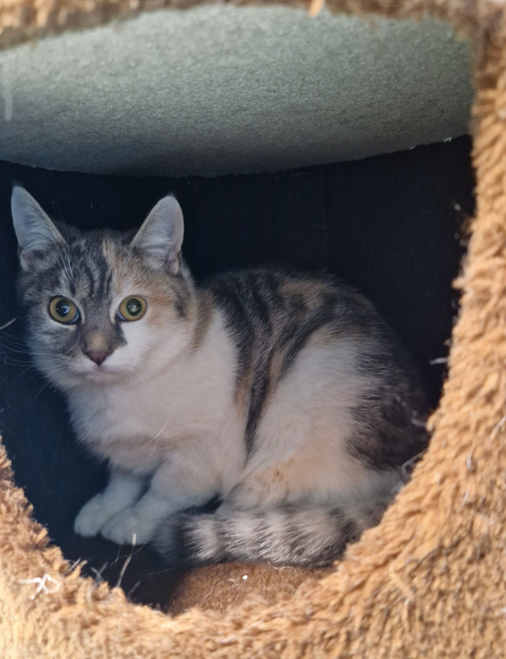Selma kam zusammen mit ihren Geschwistern zu uns. Da sie in den ersten Lebenswochen kaum Menschenkontakt hatte, ist sie noch sehr zurückhaltend. Mit viel Geduld kann aber auch sie zutraulich werden. Mit den anderen Katzen kommt Selma gut klar. Sie ist ca 5 Monate, geimpft und gechipt. Nach der Kastration und einer Eingewöhnungszeit braucht Selma eine Freigangmöglichkeit. Wer möchte ihr eine Chance geben?