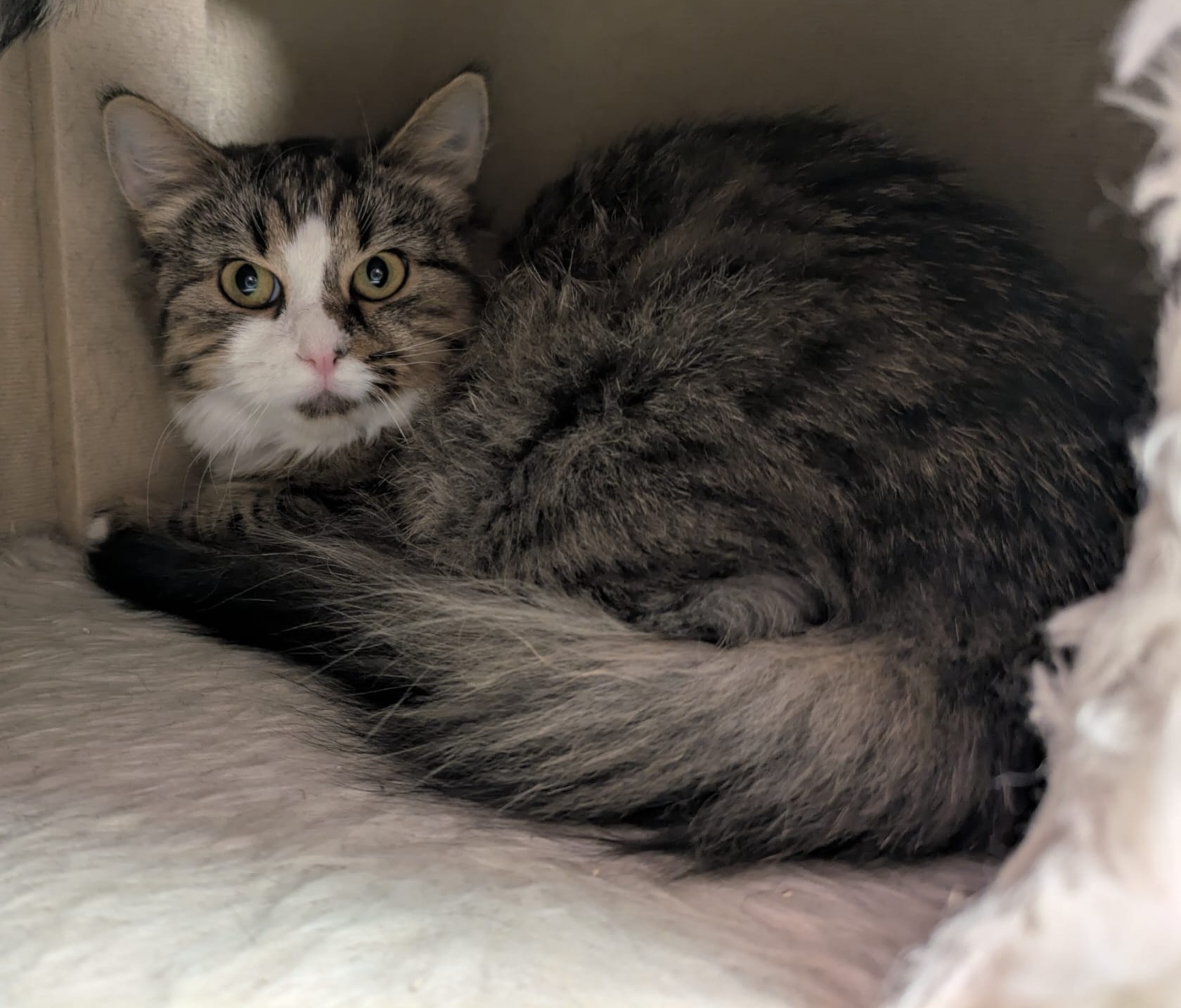 Wendy wurde zusammen mit ihren Geschwistern gefunden. Sie ist noch sehr zurückhaltend gegenüber Menschen, mit viel Geduld lässt sie sich mit einer Spielangel aus ihrer Höhle locken. Wendy hat sich bei uns einen Schnupfen eingefangen, der trotz Behandlung nicht ganz ausgeheilt ist. Es könnte sein, dass der Schnupfen im neuen Zuhause besser wird oder sogar ganz ausheilt. Wendy ist ca 5 Monate alt, geimpft, gechipt und entwurmt. Nach der Kastration und einer Eingewöhnungszeit braucht sie eine Freigangmöglichkeit. Wer möchte die schüchterne Katze aufnehmen?